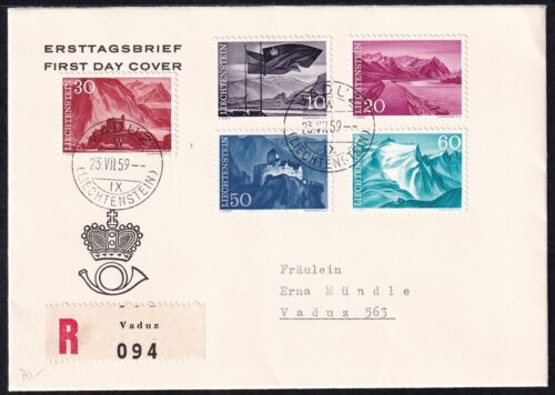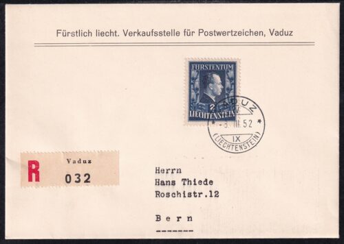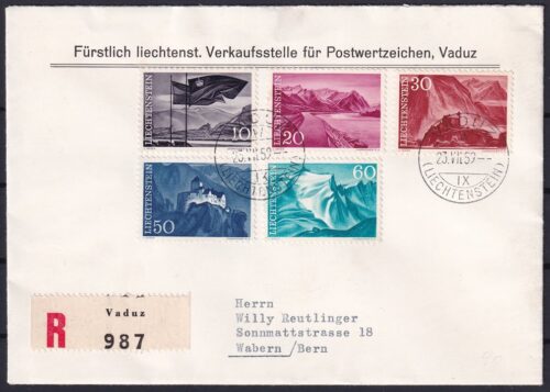 Liechtenstein, Freimarken, FDC, Nr.257-260+, R-FDC nach Bern