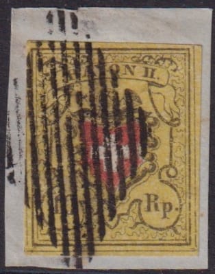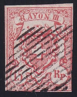 SBK Nr. 15 I mit Kreuzeinfassung Type 35 gestempelt mit schwarzer Zürcher Rosette