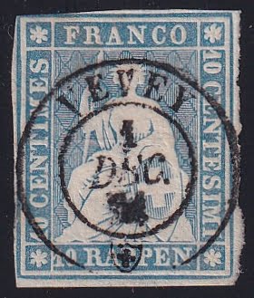 1854 Nr. 23A gestempelt "VEVEY" - Vollstempel und vollrandig