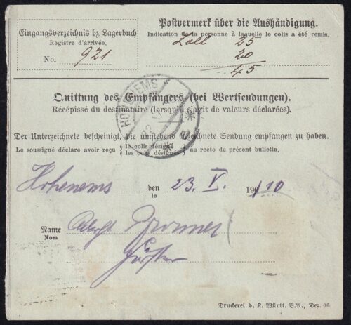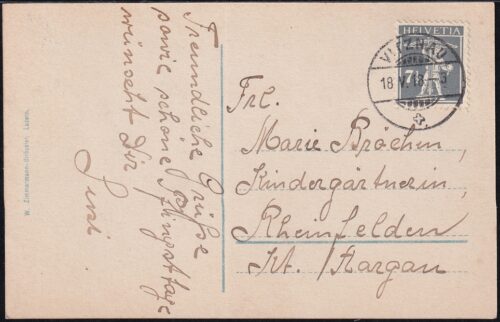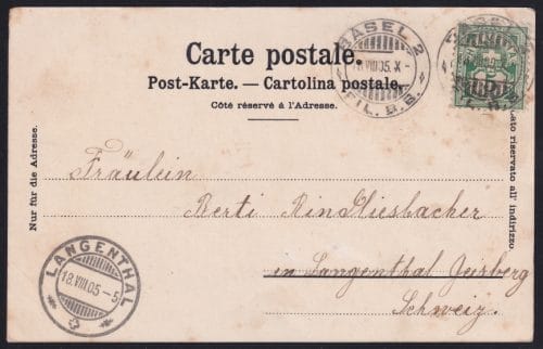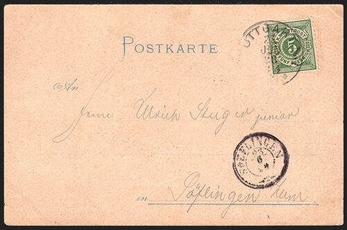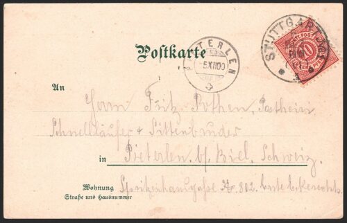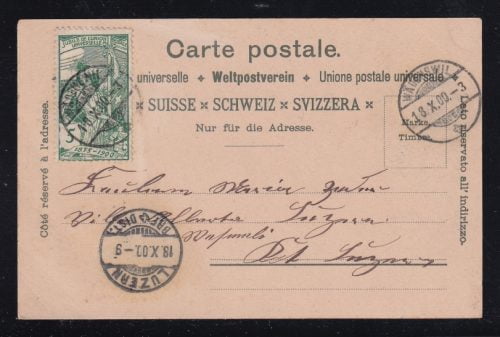 Schweiz 1910, Ganzsachen Postkarte 5 Rp. Typ III Zudruck "Osterwalder & Ronner" Schriftlänge 6.9 cm