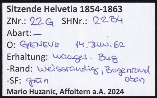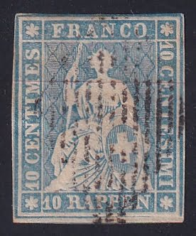 Schweiz, Altschweiz, Strubel, Nr.23G, 10Rp. blau, gestempelt, siehe Befund Huzanic