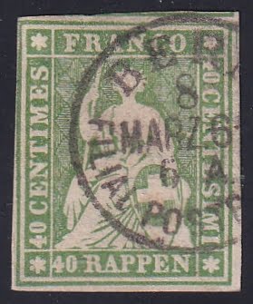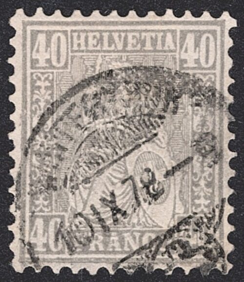 Schweiz, Stehende Helvetia, Nr.69D, 40Rp.grau, sauber gestempelt ZÜRICH