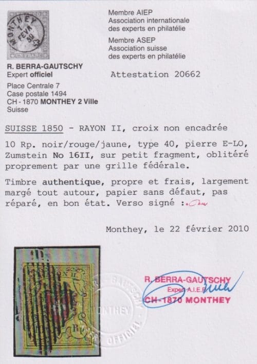 Schweiz, Altschweiz, Rayon II gelb, Nr.16 II, Typ 39/D-LU, schwarze Raute, vollrandig, signiert Renggli