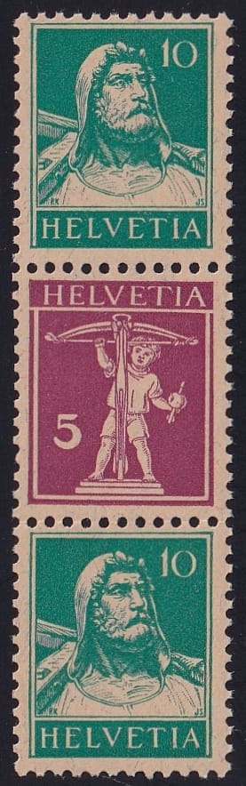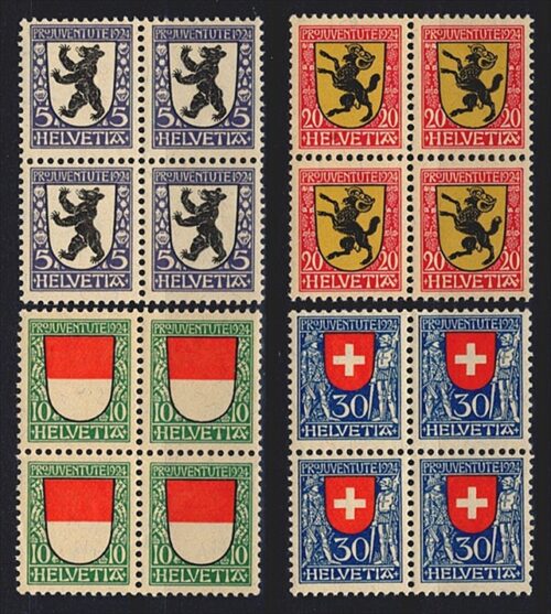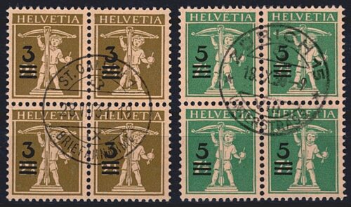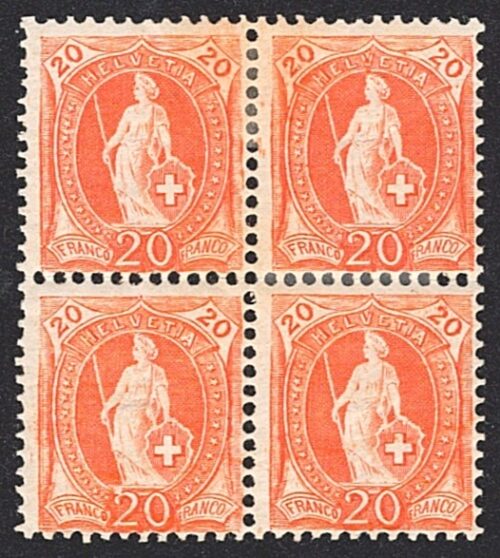 Schweiz, Abarten, PJ-Nr.51.3.01, untere Ecke retouchiert, im Viererblock