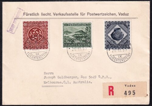 Liechtenstein, Freimarken, Nr.285-287, R-Satz-Brief nach Sargans