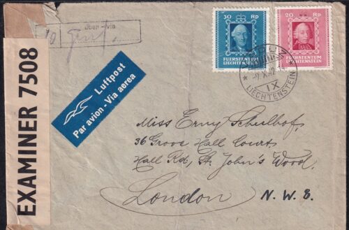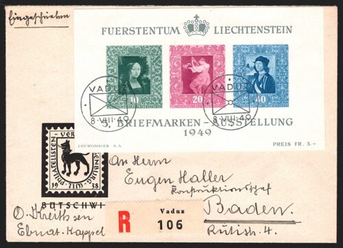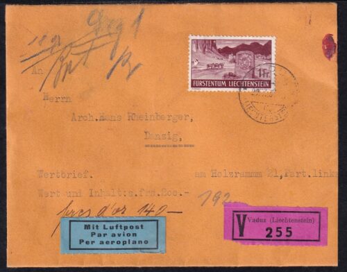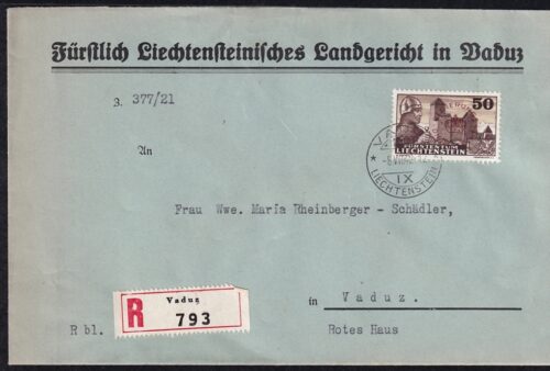 Liechtenstein, Freimarken, Nr.31/35, auf R-Bedarfsbrief, VADUZ, R-Zettel wurde neu aufgeklebt