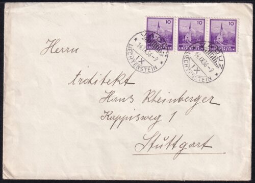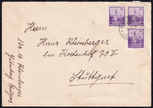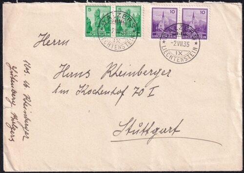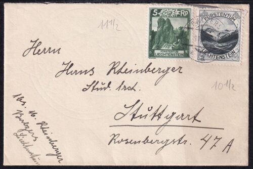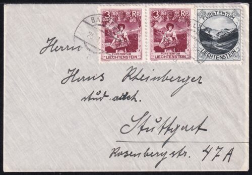 Liechtenstein, Freimarken, Nr.95B/98A, auf Brief nach Stuttgart, sauber gestempelt BALZERS