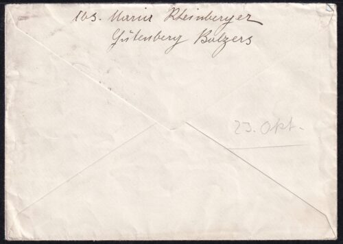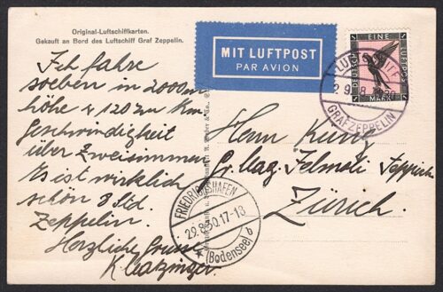 Liechtenstein, Flugpost, Zeppelinflüge, 2. Fahrt von Vaduz nach Lausanne, Brief, Ankunftstempel VADUZ mit Kennbuchstabe a