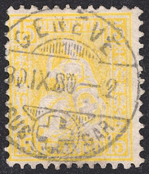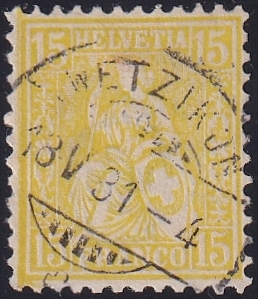 Schweiz, Sitzende Helvetia, Nr.39, 15Rp. gelb, sauber gestempelt WÄNGI