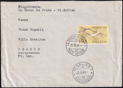 Schweiz, Sonderflüge, SF38.1h, Basel-Zürich, beförderte Sendungen 3604, R-Brief