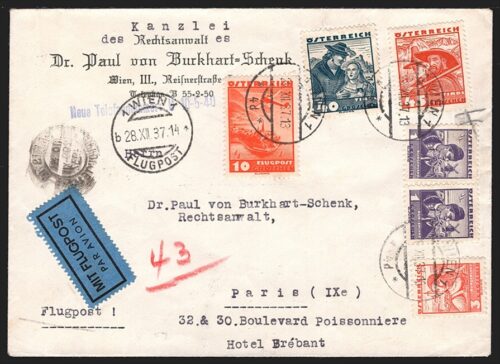 Österreich, Flugpost, Nr.225x-227x++, auf Luftbriefteil