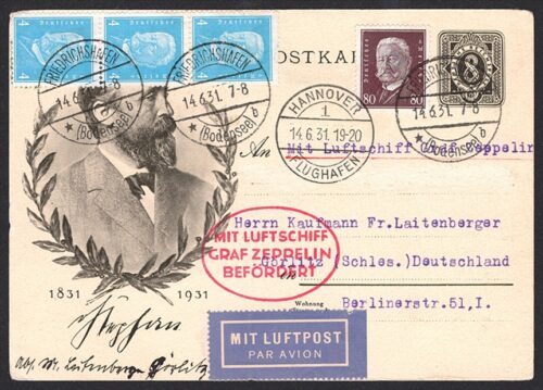 Österreich, Flugpost, Zeppelinpost, 1936, 1.Postfahrt vom LZ 129, Nr.6