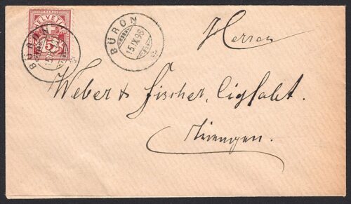 Schweiz, Nachporto, Nr.34 auf Geschäftsbrief mit Perfin aus Berlin, gestempelt WOHLEN