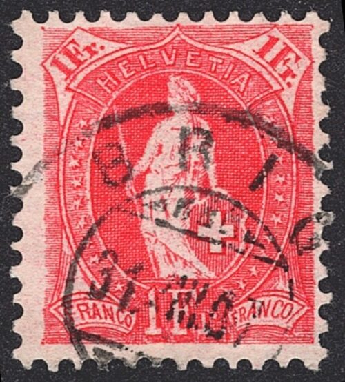 Schweiz, Stehende Helvetia, Nr.99A, 1Fr.rosakarmin, sauber gestempelt BASEL