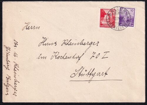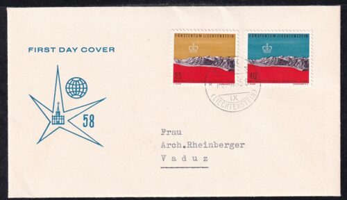 Liechtenstein 1950 Zusammendruck Mi. Nr. 277 und 288 im Paar postfrisch Bogenecke – grosse Seltenheit mit Attest