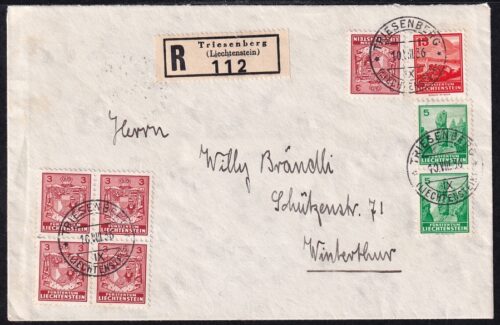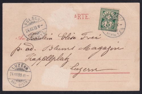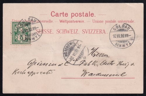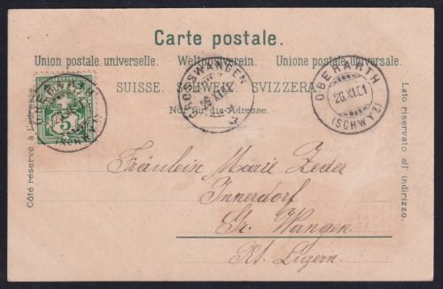 Schweiz Sitzende Helvetia, 5Rp. auf Faltbrief nach Wetzikon