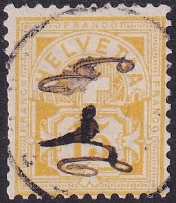 Schweiz Strubel SBK Nr. 23F mit Klischeefehler – gestempelt schwarze eidg. Raute – Bogenrand