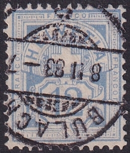 • Schweiz, Ziffermuster, weisses Papier, Nr.56, 12Rp. grauultramarin, sauber gestempelt BÜLACH Für Details sehen Sie sich bitte das/die Bild(er) an.