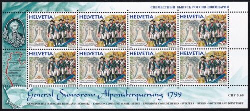 Schweiz 1999 SBK Nr. 983 „Gemeinschaftsausgabe Russland Schweiz – Denkmal Schöllenen“ Kleinbogen postfrisch