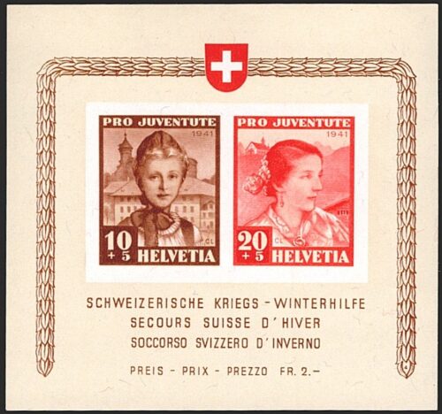 Schweiz, BIE, Kleinbogen Nr.I, Pestalozzi, weinrot, rückseitig leichte Mängel