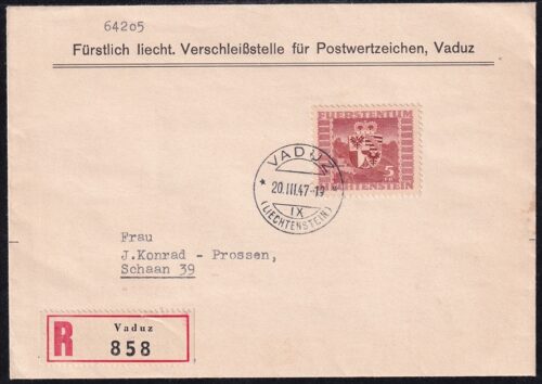 Schweiz, Freimarken, FDC, Nr.252, im Viererblock portogerecht auf R-Brief
