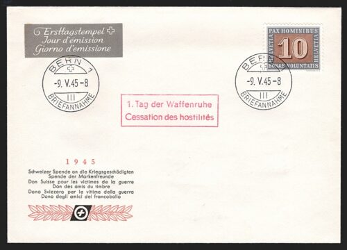 Schweiz, FDC, 1945, PAX, Nr.262-266, teils im Viererblock, meist unadressierte FDC, ET-Stempel BERN