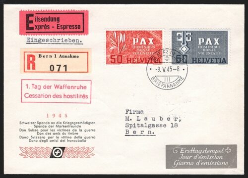 Schweiz, FDC, 1945, PAX, Nr.267/268, R-Express FDC, ET-Stempel BERN
