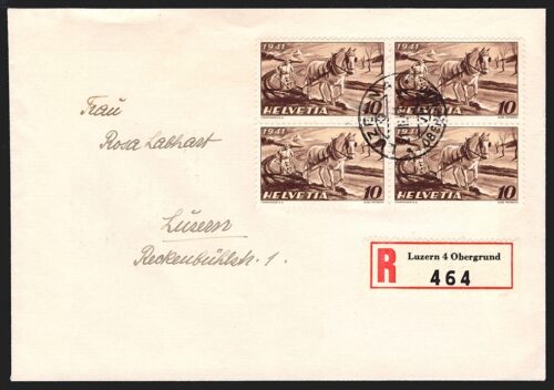 Schweiz, FDC,Freimarken, Nr.252, Anbauschlacht, im Viererblock, R-FDC, ET-Stempel LUZER