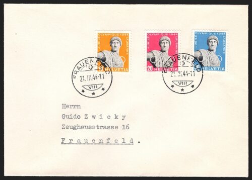 Schweiz, FDC,Freimarken, Nr.259-261, 50 Jahre Olympisches Komitée, adressierter FDC, ET-Stempel FRAUENFELD