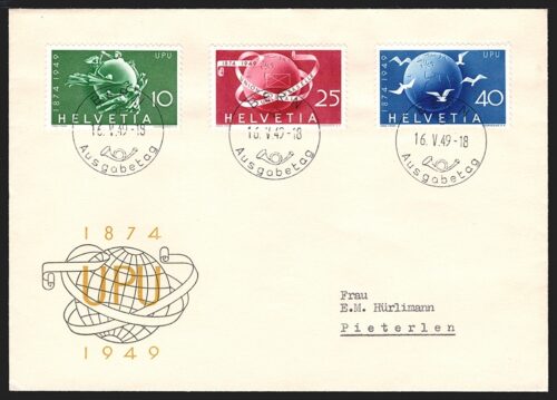 Schweiz, FDC,Freimarken, Nr.294-296, 75 Jahre UPU, adressierter, illustrierter FDC, ET-Stempel BERN