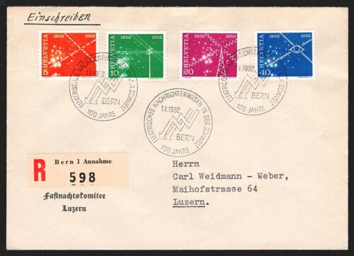 Schweiz, FDC,Freimarken, Nr.309-312, 100 Jahre Nachrichtenwesen, adressierter, illustrierter R-FDC, Sonder-ET-Stempel
