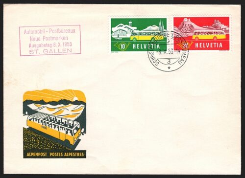 Schweiz, FDC,Freimarken, Nr.314-315, Alpenpost, unadressierter, illustrierter R-FDC, ET-Stempel AUTOMOBIL-POSTBUREAU