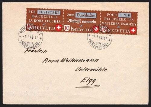 Schweiz, Zusammenhängende, Altstoff, Z36c, gestempelt WINTERTHUR