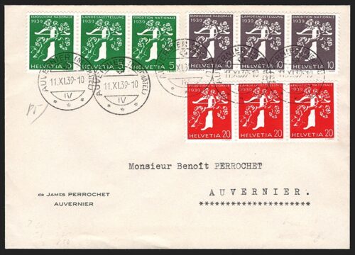 Schweiz, Zusammenhängende, Landi, Z25c,26c,27c, gestempelt AUVERNIER