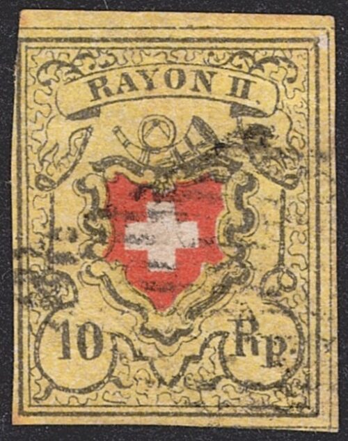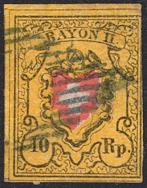 Schweiz, Altschweiz, Rayon, Nr.16II, 10Rp.gelb, T.5/D-RU, minime Mängel, blaugraue Raute