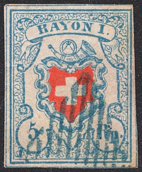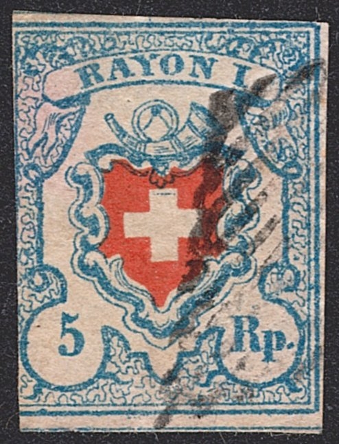 Schweiz, Altschweiz, Rayon, Nr.17II, 5Rp.hellblau, T.31/C1-LO, vollrandig, minime Mängel, blaue Raute