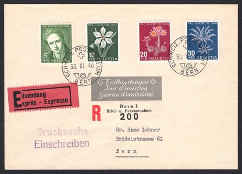 Schweiz, FDC, Pro Juventute, Nr.117-120, auf portogerechter R-Express-Drucksache, POSTMUSEUM