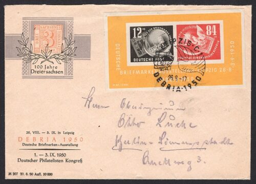 Deutschland, DDR, Bl.7, DEBRIA, Sonderstempel, Sonderumschlag, rückseitig Klappe fehlt