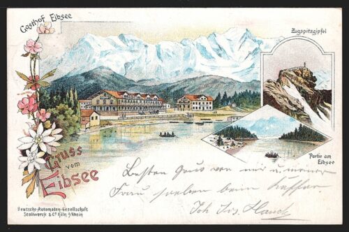 Deutschland, Lithographien, Gruss vom EIBSEE, 3 Bilder, 1902