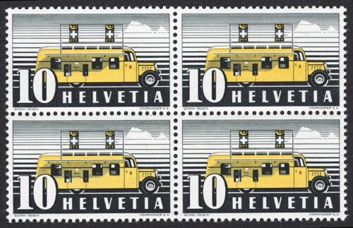 Schweiz, Freimarken, Automobilpostbureau, Nr.276, im Viererblock