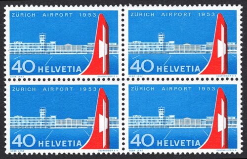Schweiz, Freimarken, Flughafen Kloten, komplette Serie, Nr.313, im Viererblock