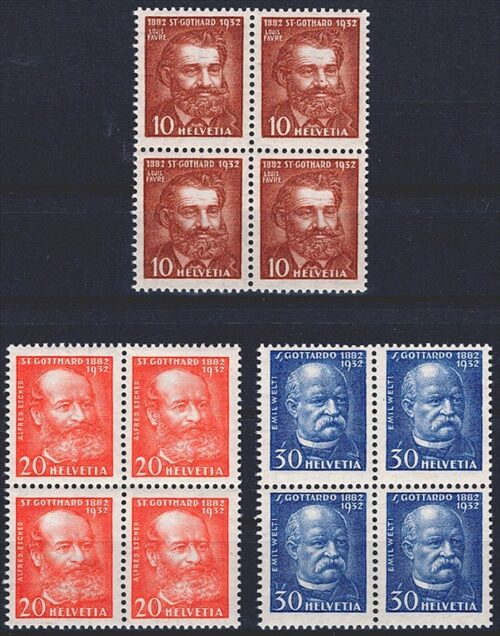 Schweiz, Freimarken, Gotthardbahn, Nr.191-193, im Viererblock
