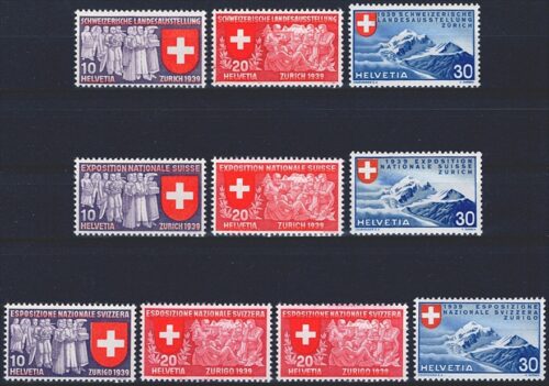Schweiz, Freimarken, Landi, Nr.228yR-238yRM, komplette Serien, alle mit rückseitiger Kontroll-Nummer