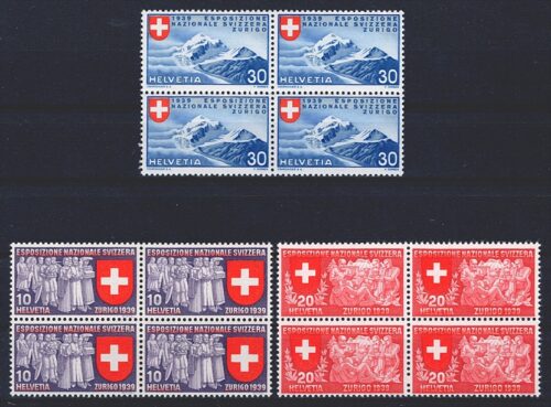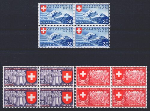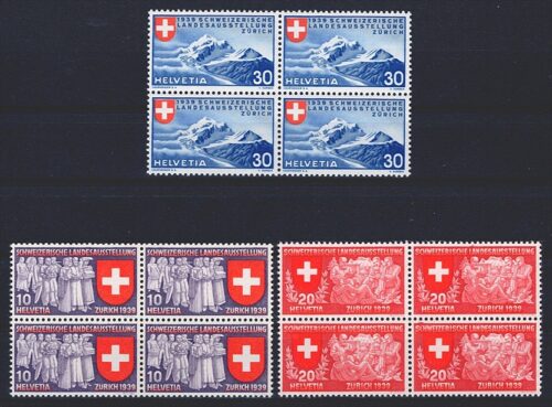 Schweiz, Freimarken, Landi deutsch, Nr.219-221, im Viererblock
