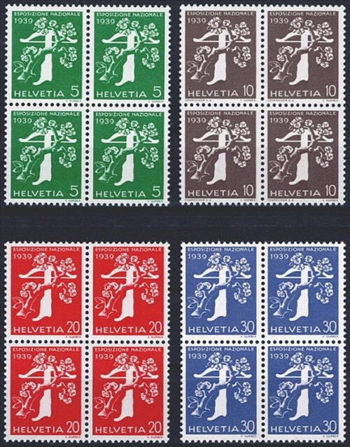 Schweiz, Freimarken, Sondermarken, komplette Serie, Nr.320-323, im Viererblock