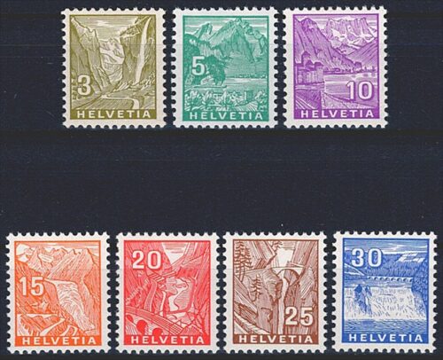 Schweiz, Freimarken, Landschaftsbilder, Buchdruck, Nr.194-200, komplette Serie