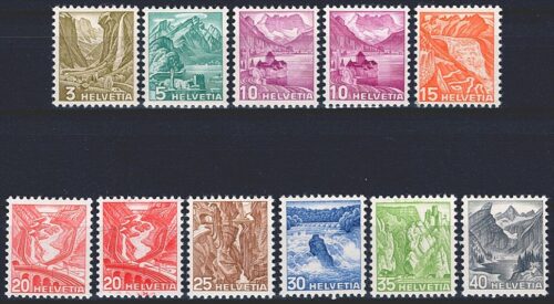 Schweiz, Freimarken, Landschaftsbilder, Stichtiefdruck, geriffeltes Papier, Nr.201z-209z, komplette Serie, 11 Werte