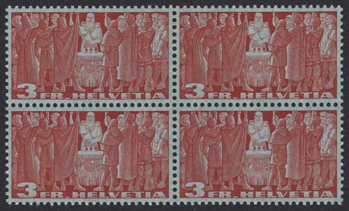 Schweiz, Freimarken, Nr.216v, 3Fr. lichtempfindliches Papier, im Viererblock