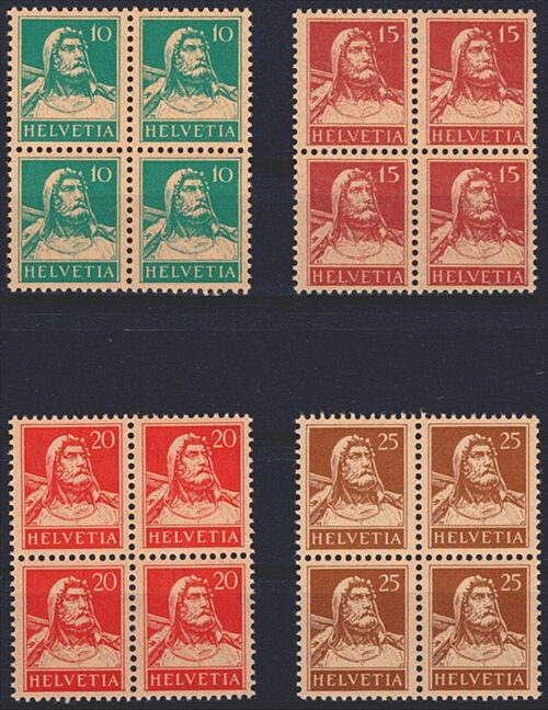 Schweiz, Freimarken, Tellbrustbild, Nr.172-175, im Viererblock