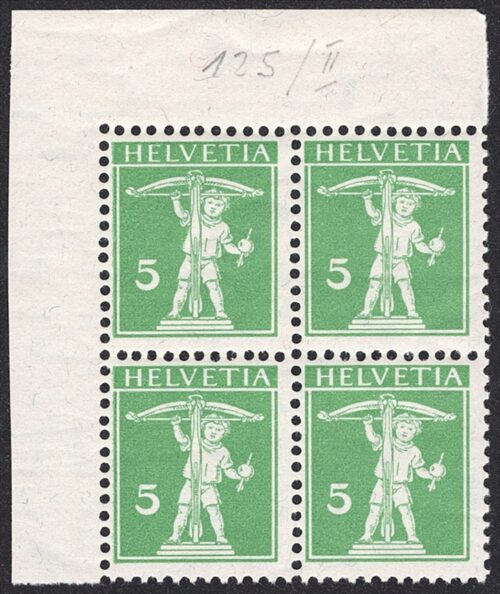 Schweiz, Freimarken, Tellknabe, Nr.125ll, im Viererblock, Bogeneckrand